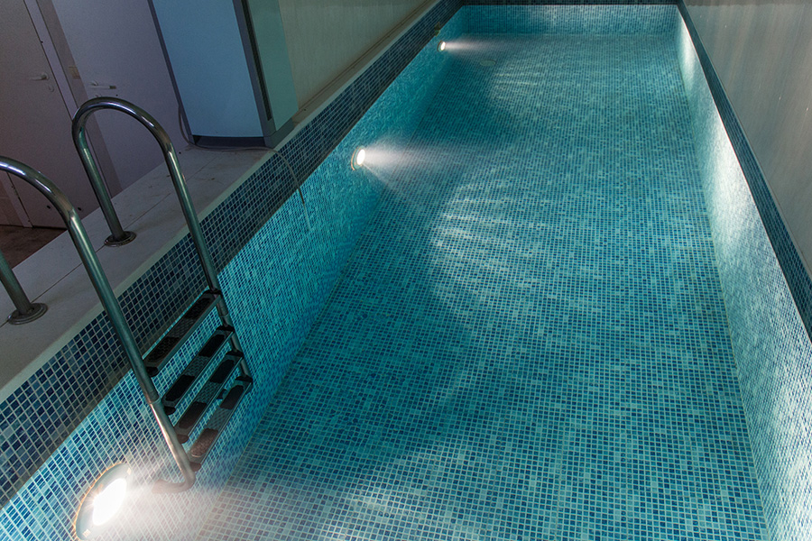 Финская сауна с эффектом русской парной вмещает до 6 человек, а ее изюминкой является эффектная подсветка и возможность самостоятельно регулировать температуру пара. Рядом с сауной находится большой бассейн с подогревом, подсветкой и постоянной фильтрацией. В помещении установлен осушитель воздуха.